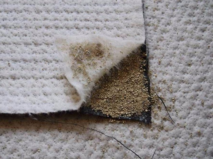 一体化——防水材料和对象的一体化:钠基膨润土遇水时,具有20—28倍的膨胀能力,即使混凝土结构物发生震动和沉降,GCL内的膨润土也能修补2mm以内混凝土表面的裂纹。